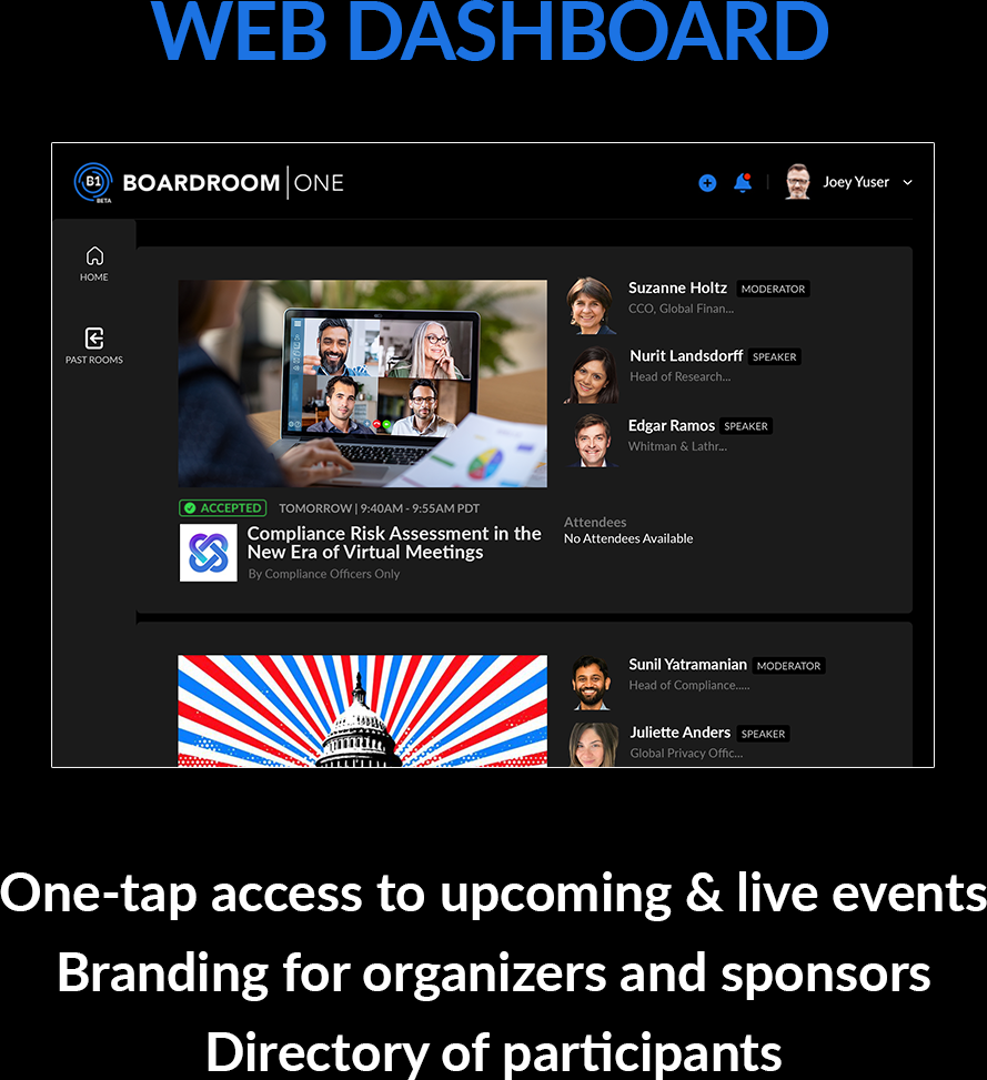 Conduct private and compliant meetings — Boardroom One ensures accountability as an invite-only platform with security built in, not bolted on, and an architecture controlled and managed by our customers.